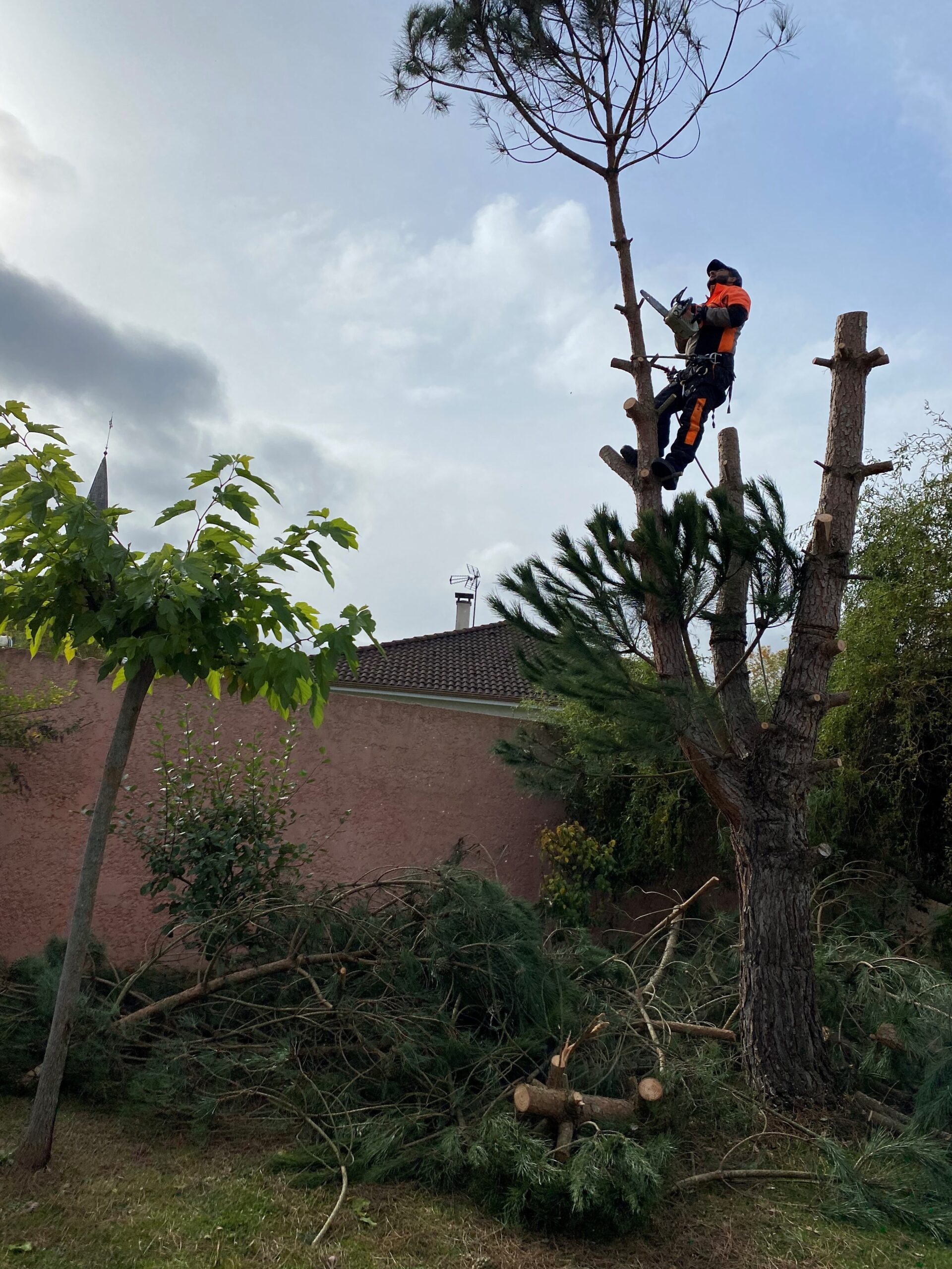 Le client m’a contacté concernant deux pins à abattre dans son jardin pour cause des chenilles processionnaires.